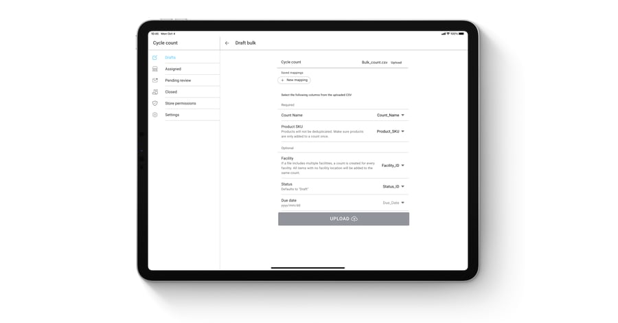 For example, a retailer with 30 stores across different regions needs to perform inventory counts for a specific set of products in multiple locations. Previously, the operations team would have to create 30 separate cycle count requests. With the new bulk import feature, they can now upload a single CSV file listing all locations and product information, allowing them to create and assign all cycle counts in one step.