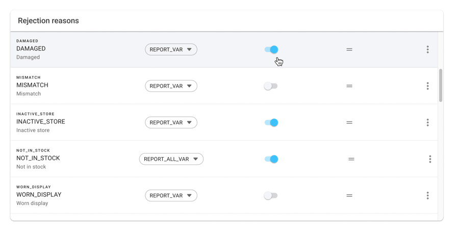 For example, store associates using the BOPIS or Fulfillment App can see rejection reasons related to in-store issues, such as out-of-stock items or damaged goods. On the other hand, customer reps using the Order Management System can view a broader set of rejection reasons to address customer-specific scenarios like operational decisions in order routing which override allocations done by the OMS.