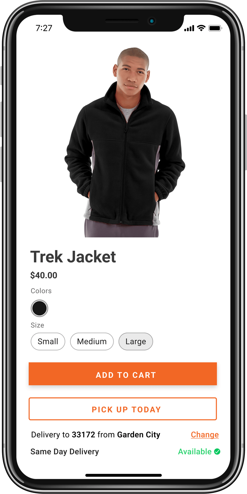 Show Same-Day and Next-Day delivery options on the product detail page when the product a customer is browsing is in-stock at a near by fulfillment location.